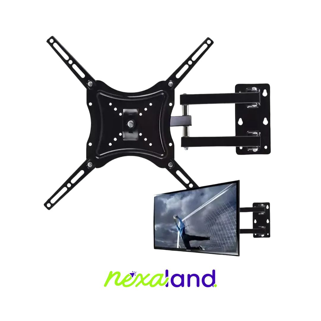 Soporte Base Brazo Pared Televisores 14'' 55'' Resistente Movible Soporte de muro para televisores plasma , LCD, y LED de 14 a 55 pulgadas hasta 50 kg. Hecho de acero que ofrece fuerza y durabilidad , de color negro ideal para poner tu televisor de una forma distinta y así ahorrar espacio en tu hogar . Dispone de gran Angulo de movilidad gracias a su brazo articulado y hacer mas cómoda y clara la visión del televisor.